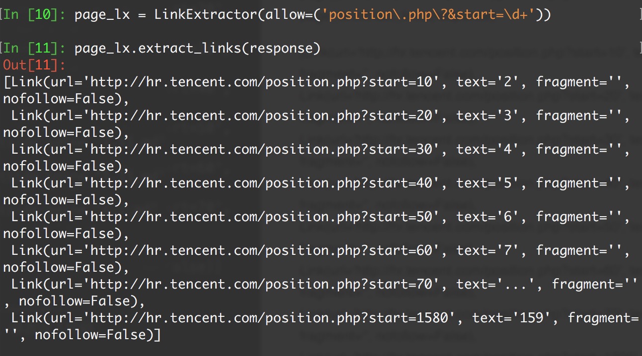 page_lx = LinkExtractor(allow=('position\.php\?&start=\d+')) # page_lx = LinkExtractor(allow = ('start=\d+')) page_lx.extract_links(response)